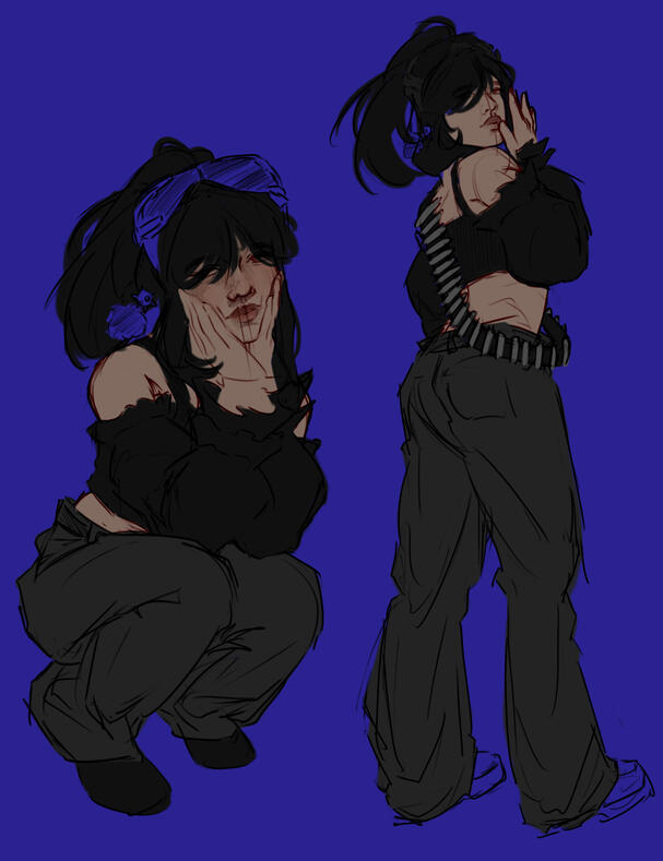 This example is a very recent sketch that I made, of a singer that I listen to. For pricing: One fullbody sketch = $25, and this page has multiple fullbodies + halfbodies, being priced fairly as a multi-pose sheet at ~$40–45 total.