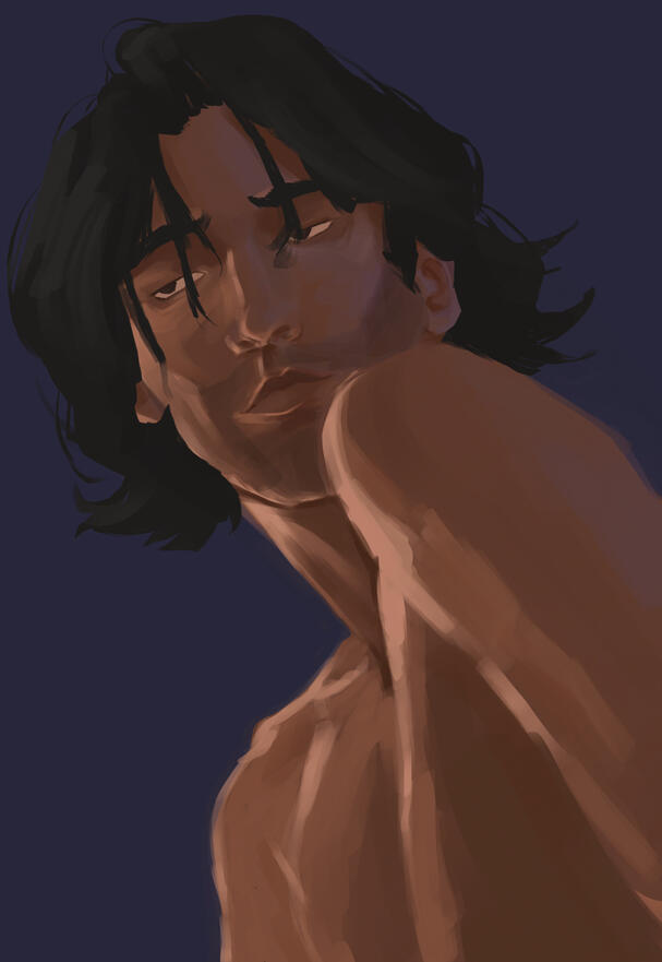 This is a rendered NSFW halfbody completed in 1 hour and 40 minutes. Focused on tone and tactile detail; it's also an example of a fanart, and a commission done for a close friend of mine.