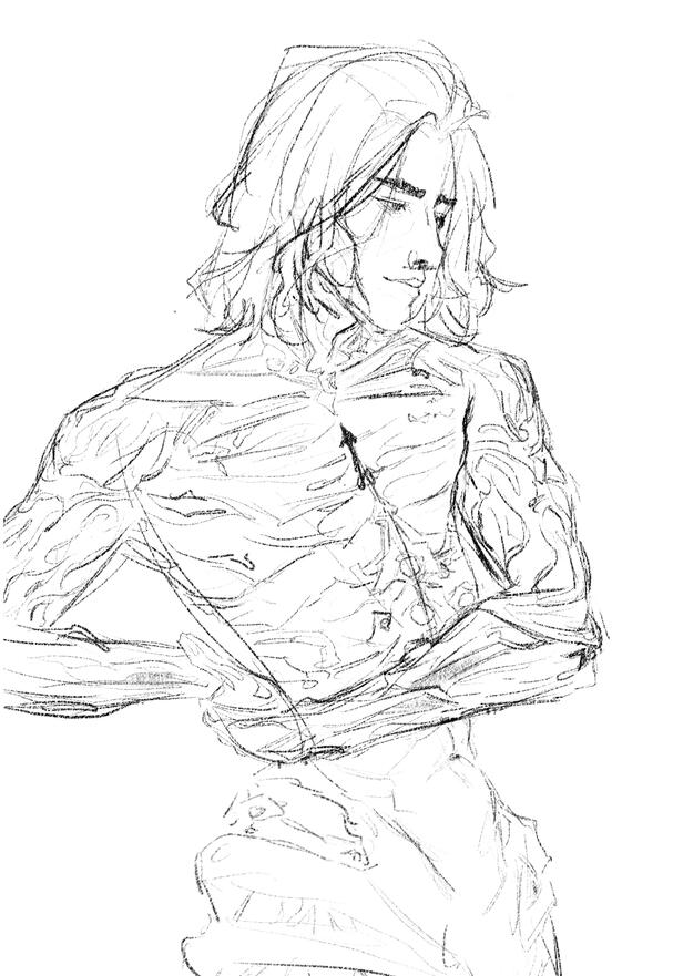 This is an example of a fully sketched halfbody illustration styled as a character/oc example. (though still in it's sketch phase)Still working but upcoming to 2.0 hours (total page time), the running price for a piece like this would be $25 maximum.
